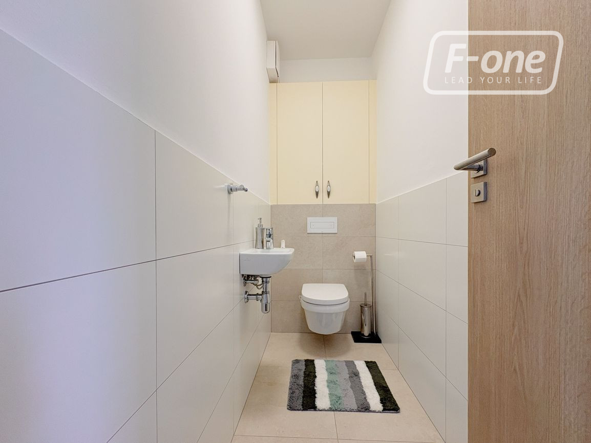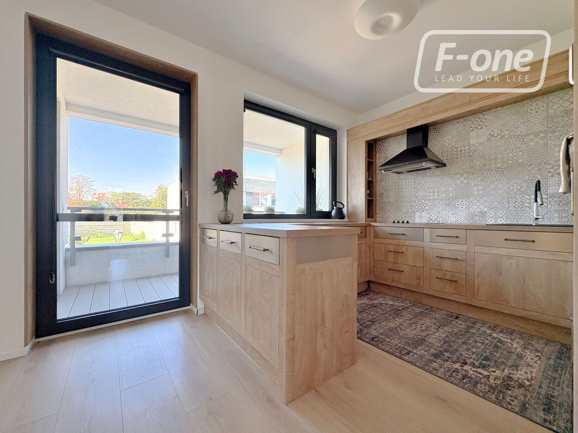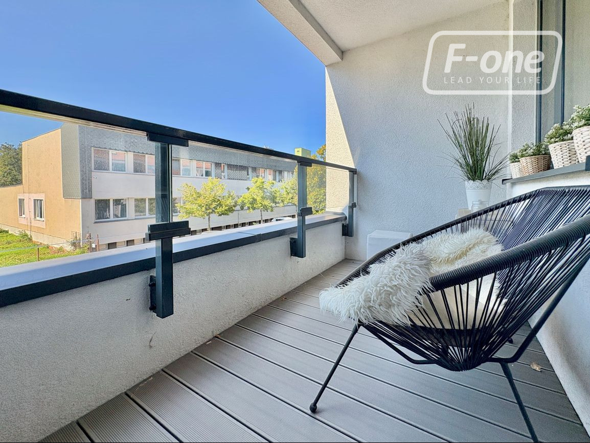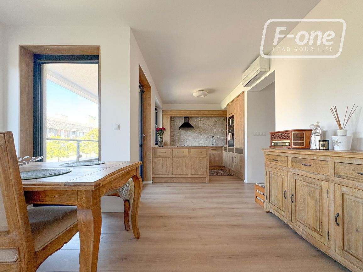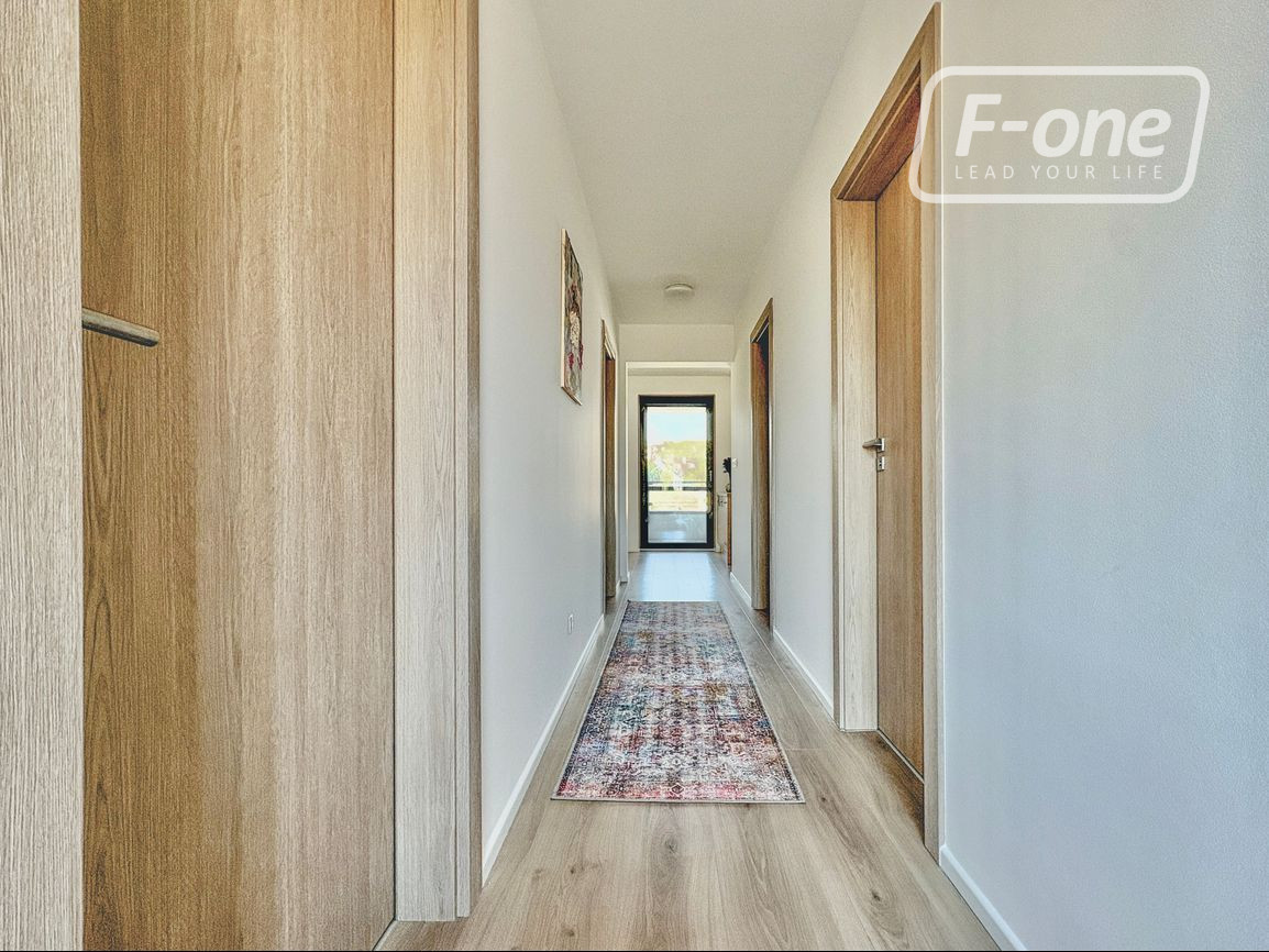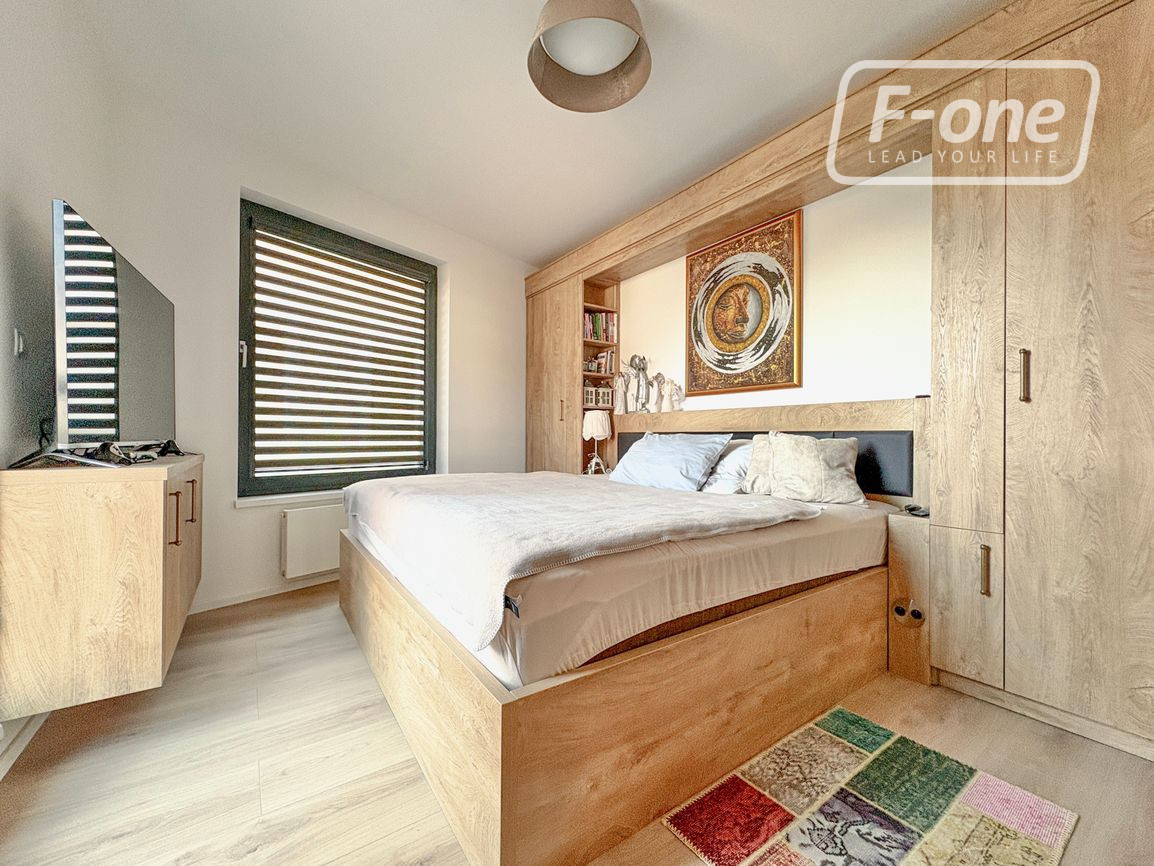 Byt sa nachádza na 2. poschodí zo 4 v modernom bytovom dome s výťahom (kolaudácia v roku 2019). Dispozícia je premyslená do detailu – vstupná chodba so samospúšťacím osvetlením a dostatkom úložného priestoru a vstupom na terasu s výhľadom do vnútrobloku, priestranná spálňa, samostatné WC, kúpeľňa s vaňou aj sprchovacím kútom a samostatná izba so vstavaným roll-doorom. Dominantou bytu je veľkorysá obývacia izba spojená s dizajnovou kuchyňou na mieru, ktorá je vybavená vstavanými spotrebičmi vrátane práčky a umývačky riadu. Z obývacej časti je priamy vstup na balkón, ktorý poskytuje príjemný priestor na oddych.