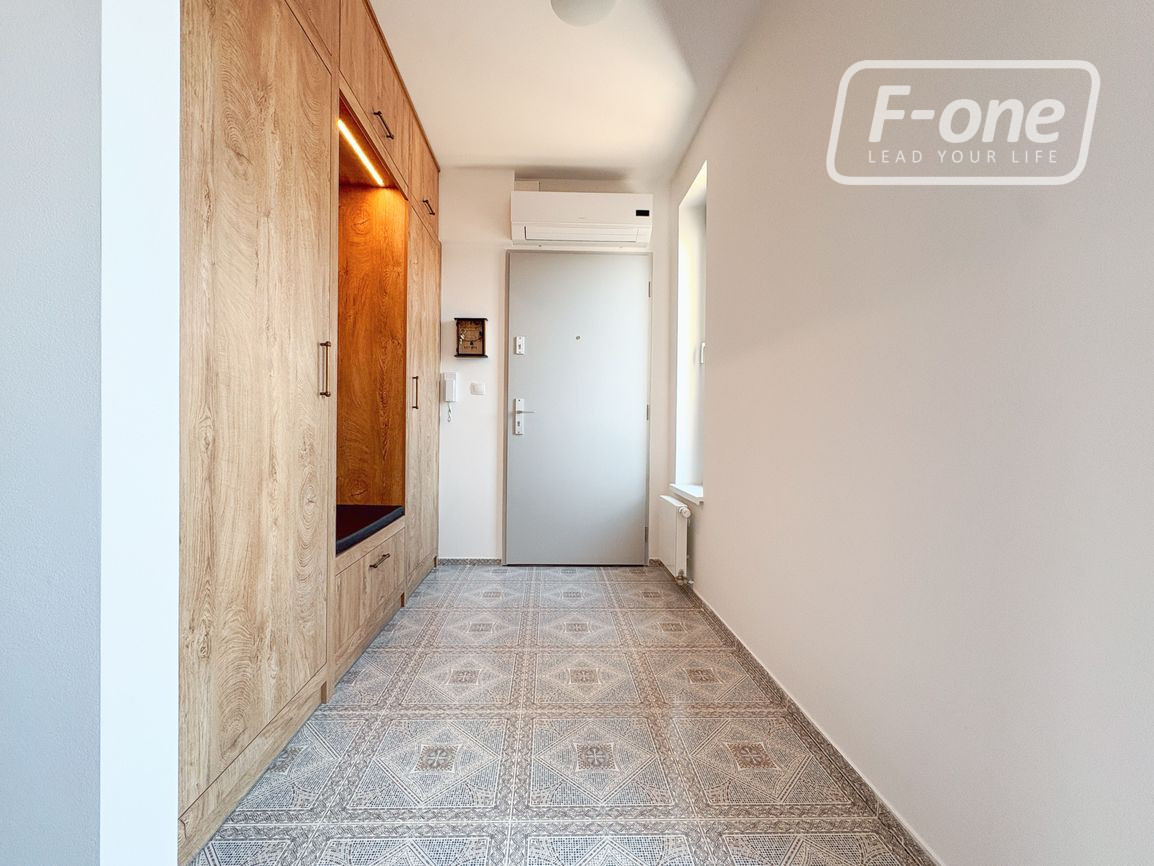 Byt pôsobí svetlo, vzdušne a elegantne, vďaka kvalitným materiálom použitým v interiéri. Predáva sa kompletne zariadený nábytkom na mieru, takže nový majiteľ si môže okamžite vychutnať pohodlie bývania bez nutnosti ďalších investícií. V horúcich letných dňoch oceníte klimatizáciu, ktorá zabezpečí príjemnú teplotu v celom byte. Komfort bývania zvyšujú moderné hliníkové okná a látkové zatmavovacie žalúzie, ktoré dodávajú interiéru príjemný vzhľad.