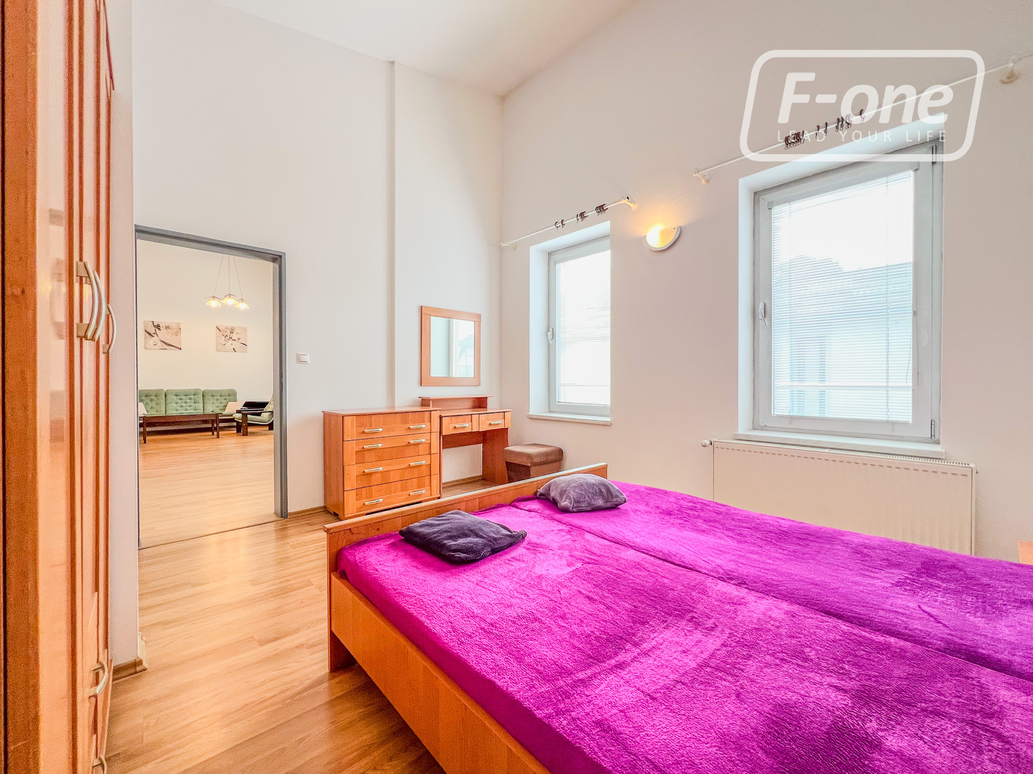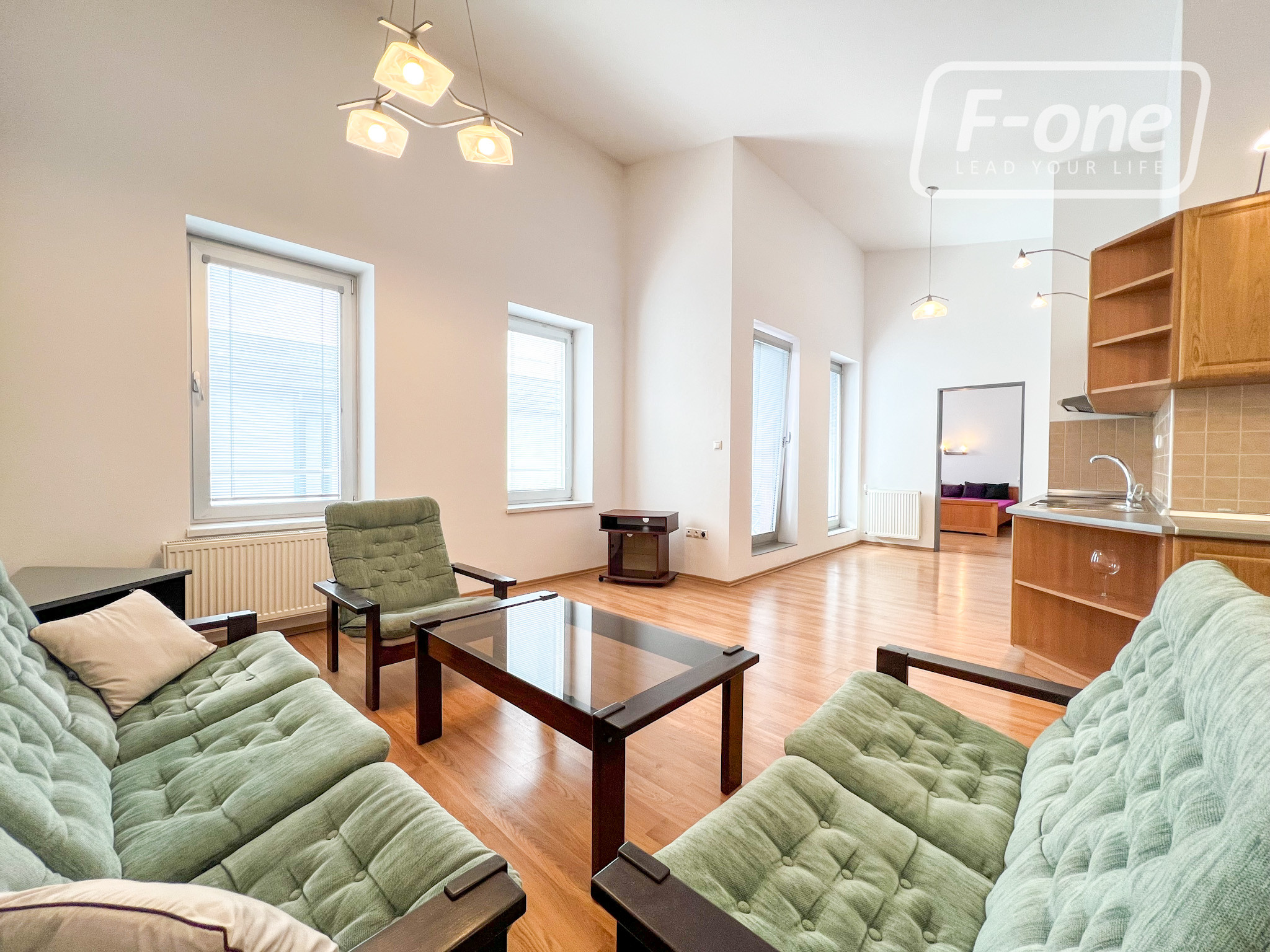 Byt je orientovaný na juh a pozostáva zo vstupnej chodby, kúpeľne s WC, veľkorysej obývacej izby prepojenej s kuchyňou, samostatnej spálne a balkóna. Prenajíma sa kompletne zariadený podľa fotografií vrátane kuchynskej linky so spotrebičmi a nábytku v dennej zóne aj spálni.