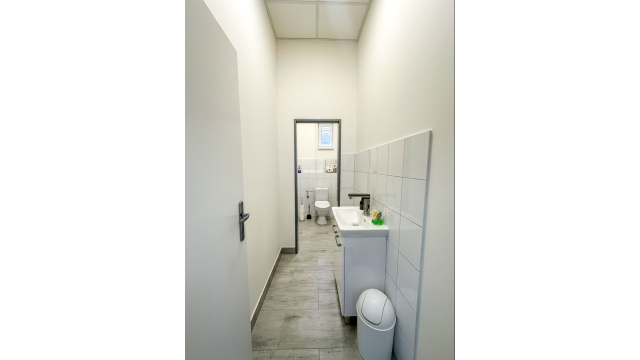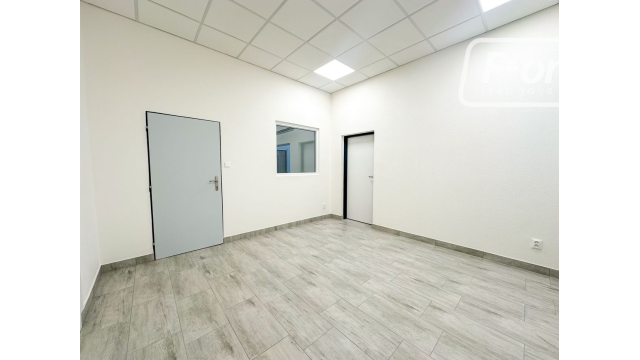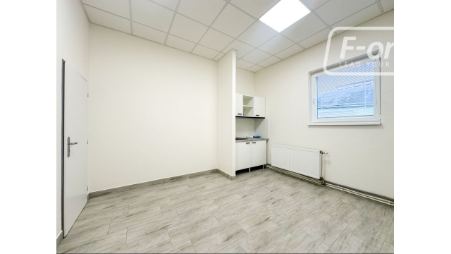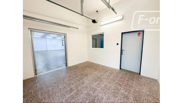 Tvorí ju vstupná chodba, kde sa nachádza elektrická garážová brána s rozmermi 2,2 x 2,2 m, dve kancelárie, kúpeľňa a toaleta. Prvá kancelária má rozlohu 16 m2 a je prepojená s druhou kanceláriou s plochou 14 m2, v ktorej sa nachádza aj menšia kuchyňa. Dominantou je skladová časť s výmerou približne 120 m2, v ktorej sa nachádza prívod vody, čo umožňuje využitie aj na skladovanie potravín alebo iných komodít, kde je voda potrebná aj mimo sociálnych zariadení. Celý objekt je vykurovaný, čo zabezpečuje komfortné podmienky počas celého roka.