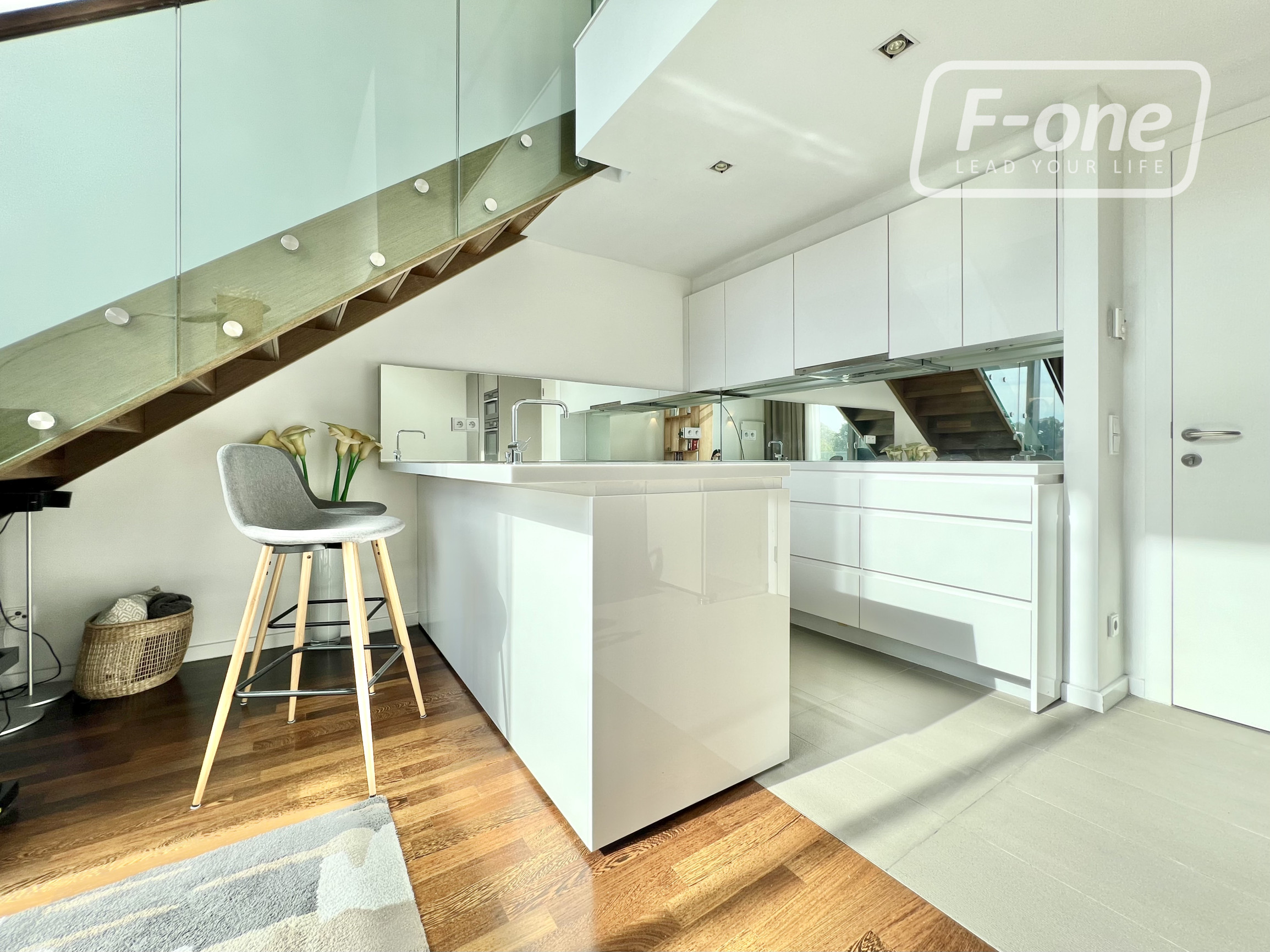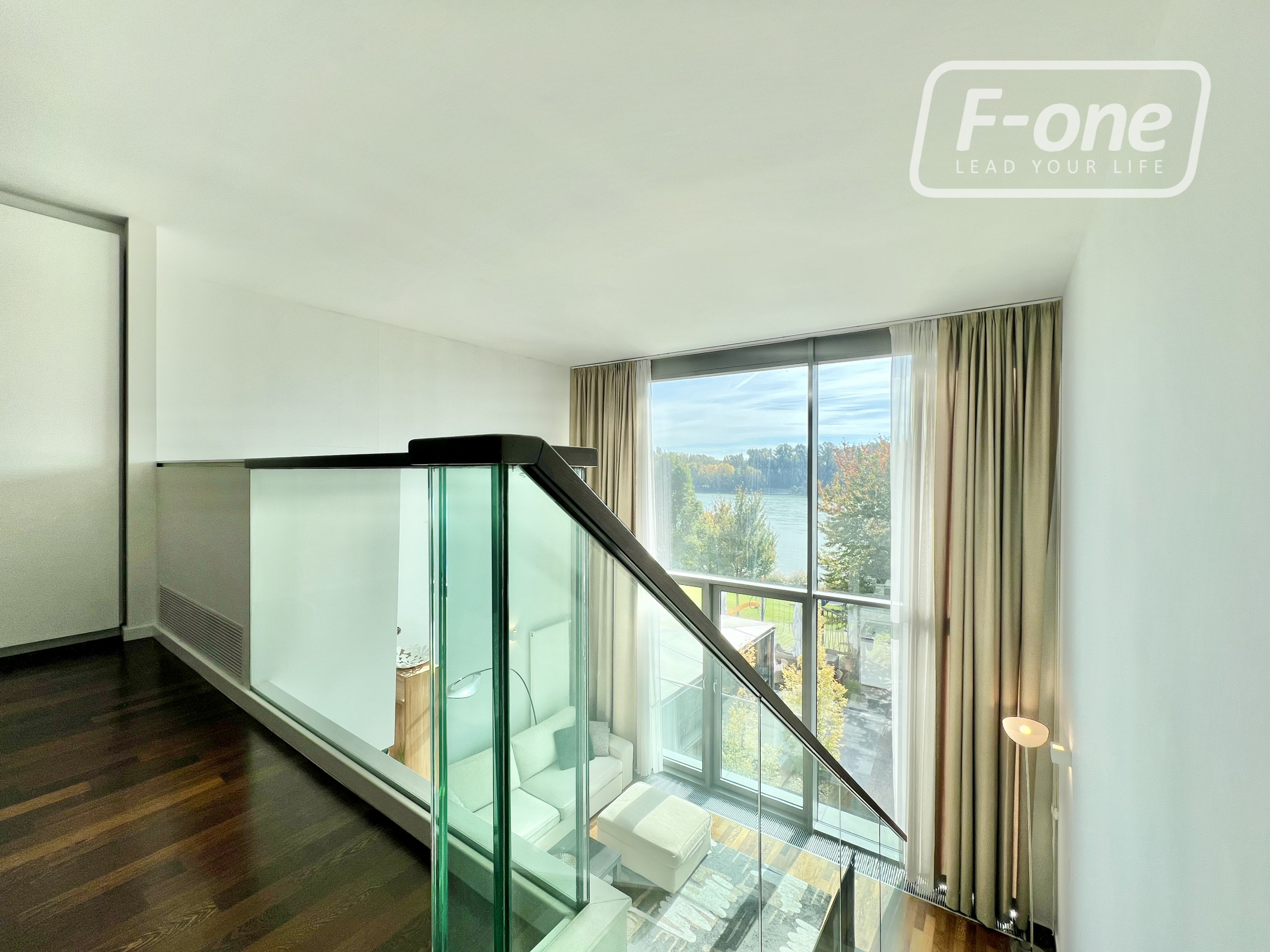 Dispozícia bytu ponúka vstupnú chodbu s množstvom úložného priestoru, kúpeľňu s vaňou a vybavením, dizajnovú kuchyňu s jedálenským kútom a obývaciu izbu s veľkoformátovými oknami, ktoré zabezpečujú dostatok prirodzeného svetla a nádherný výhľad na Dunaj. Na poschodí sa nachádza priestranná spálňa s úložnými priestormi, otvorená do priestoru, čo vytvára pocit vzdušnosti a elegancie. V byte je nainštalovaná klimatizácia, ktorá zabezpečuje ideálnu teplotu počas celého roka bez narušenia dizajnu interiéru.