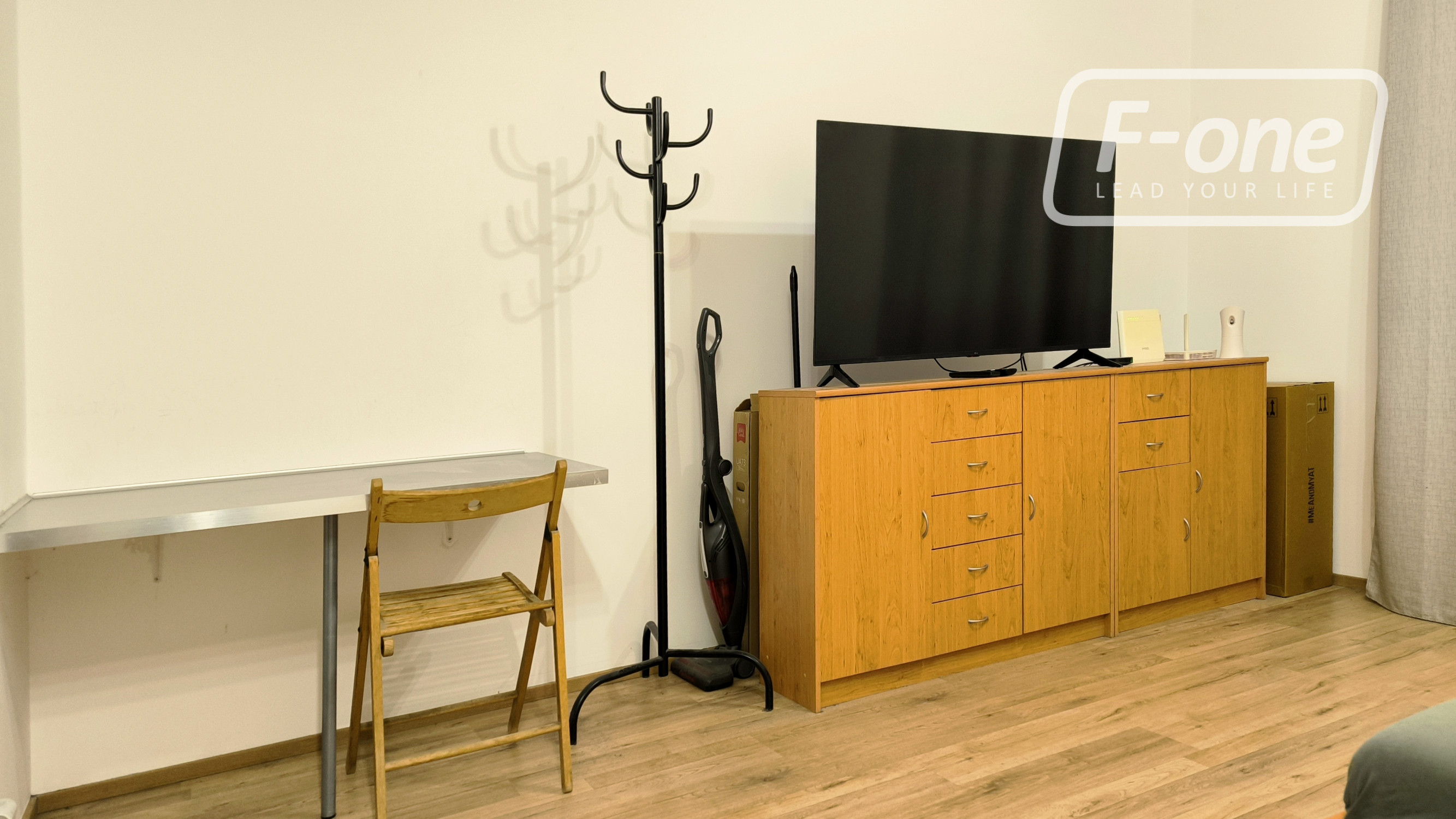 Byt pozostáva zo svetlej obytnej miestnosti s posteľou s úložným priestorom, TV a skrinkovým úložným systémom. Kuchynská časť je vybavená vstavanými spotrebičmi – varná doska, rúra, chladnička, mikrovlnka, digestor či kávovar. Súčasťou je kúpeľňa so sprchovým kútom spojenej s WC. K bytu patrí balkón aj pivnica.
