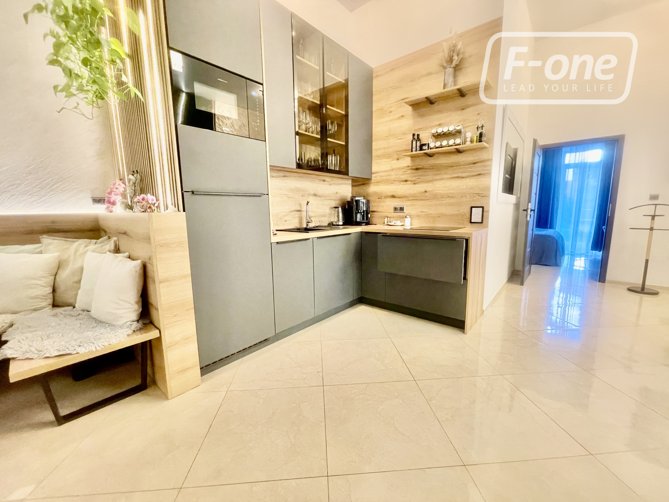 Vstupná predsieň, plne vybavená kuchyňa s modernými spotrebičmi a americkou chladničkou, priestranná obývacia izba s galériou a odpočinkovou sieťou, spálňa orientovaná do vnútrobloku so vstupom na spoločný súkromný dvor, kúpeľňa so sprchovým kútom, samostatné WC.