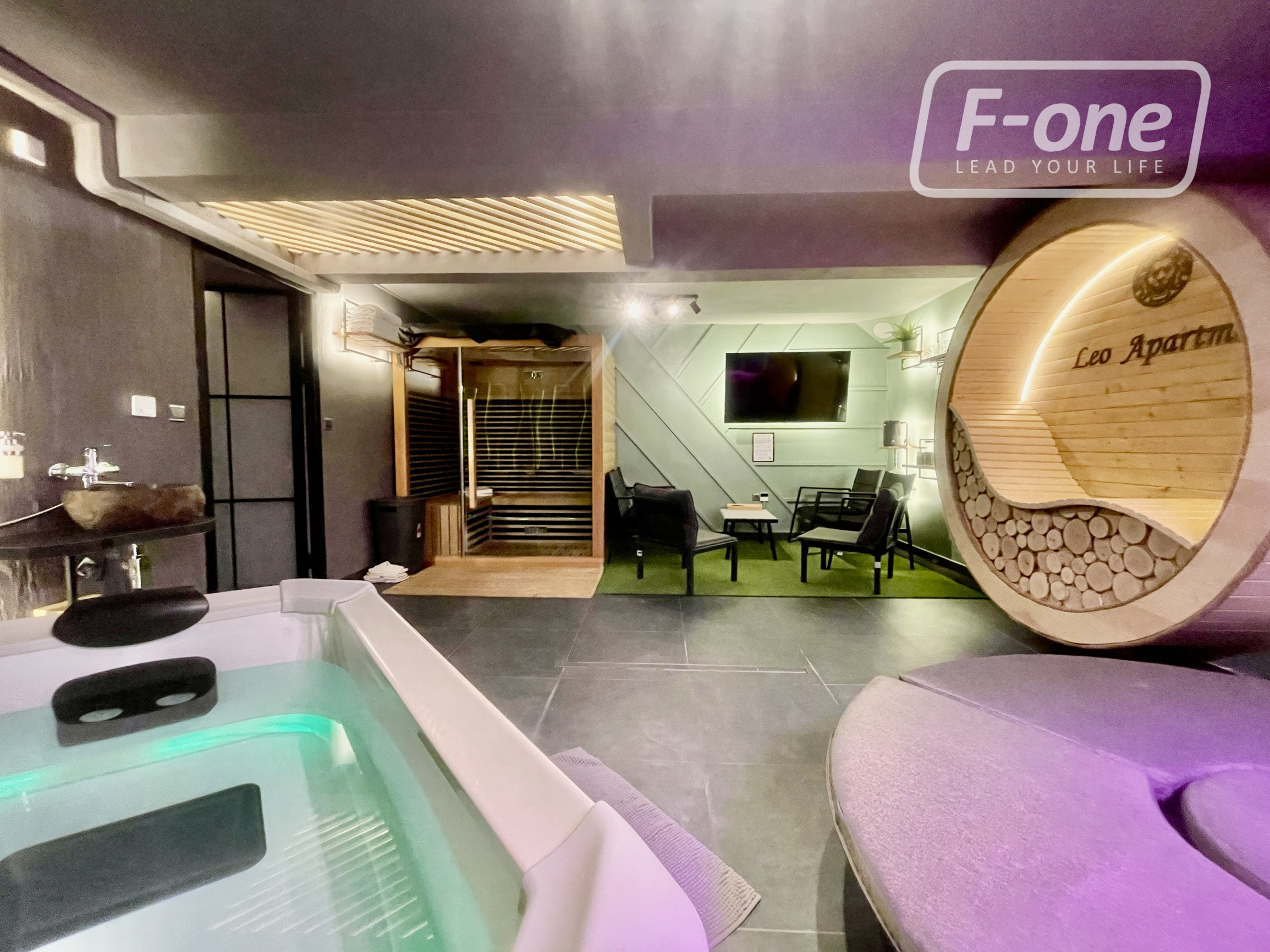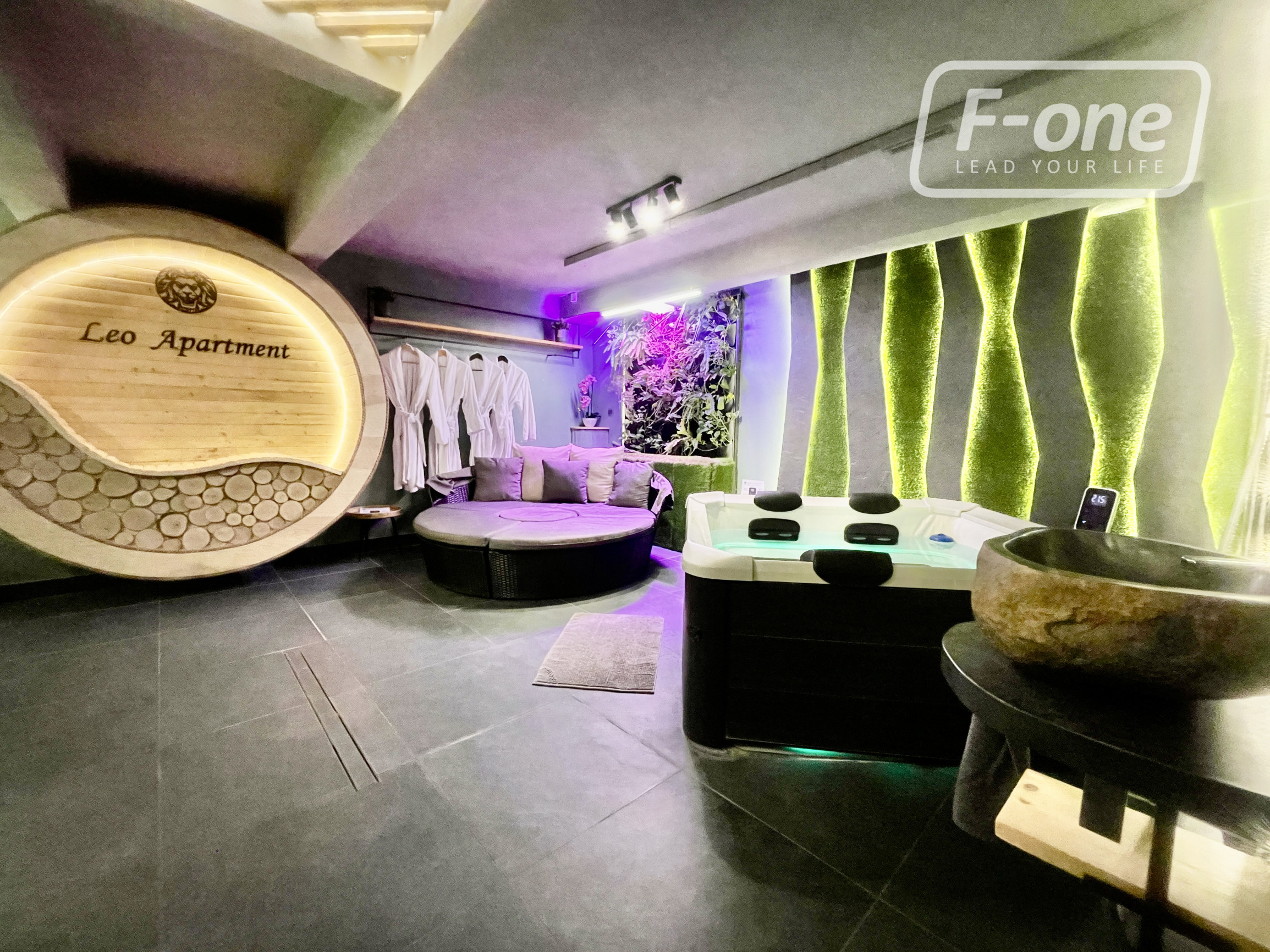 Infrasauna s chromoterapiou, jacuzzi s hydromasážou a LED osvetlením, dve kúpeľne, oddychová miestnosť, technická miestnosť, podlahové kúrenie a kompletné nútené vetranie.