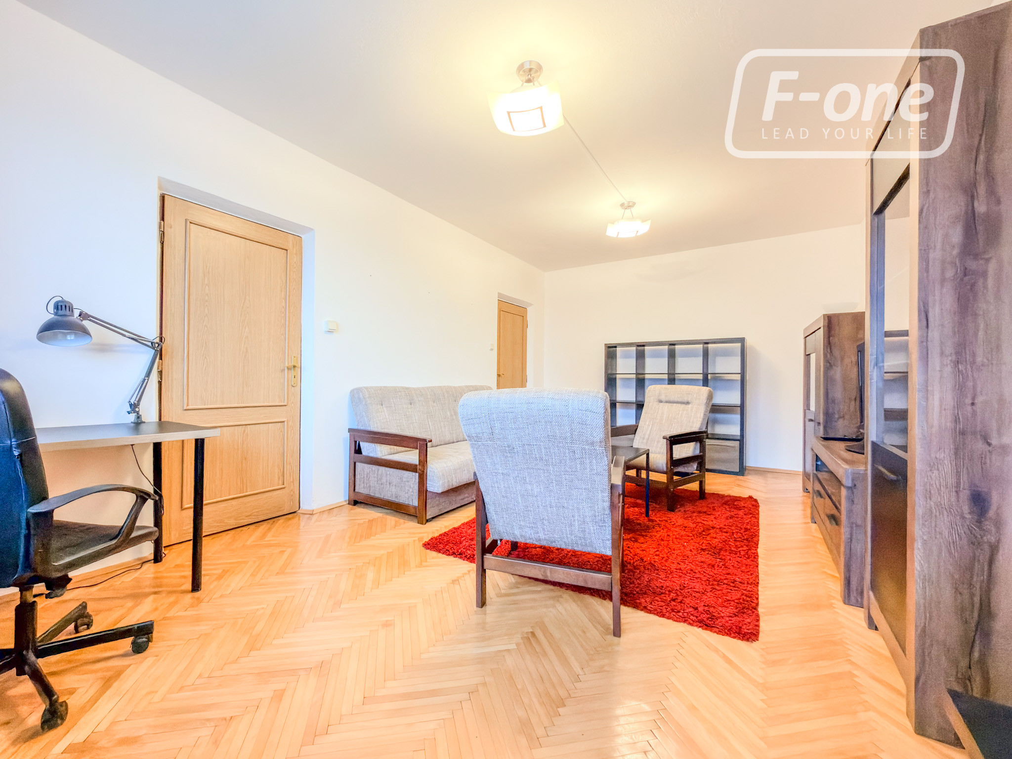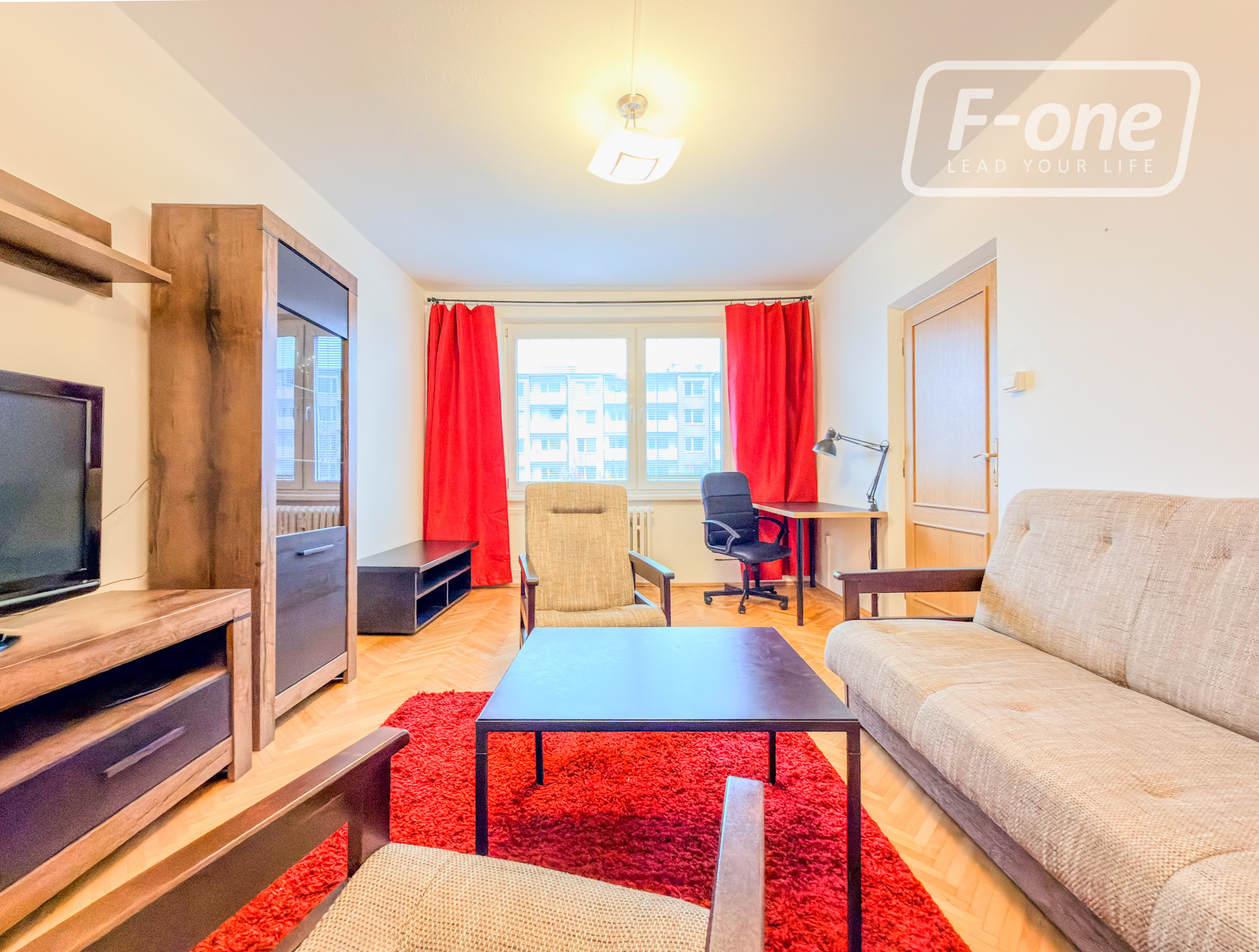 Dispozíciu tvorí priestranná obývacia izba, samostatná spálňa, samostatná kuchyňa, kúpeľňa s vaňou a sprchovým kútom, samostatné WC a veľkorysá vstupná hala s dostatkom miesta na úložné priestory. Byt je bez balkóna, no veľké plastové okná zabezpečujú dostatok denného svetla počas celého dňa. Veľkou devízou bytu sú kvalitné drevené parkety vo väčšine miestností, ktoré dotvárajú príjemnú atmosféru bývania.