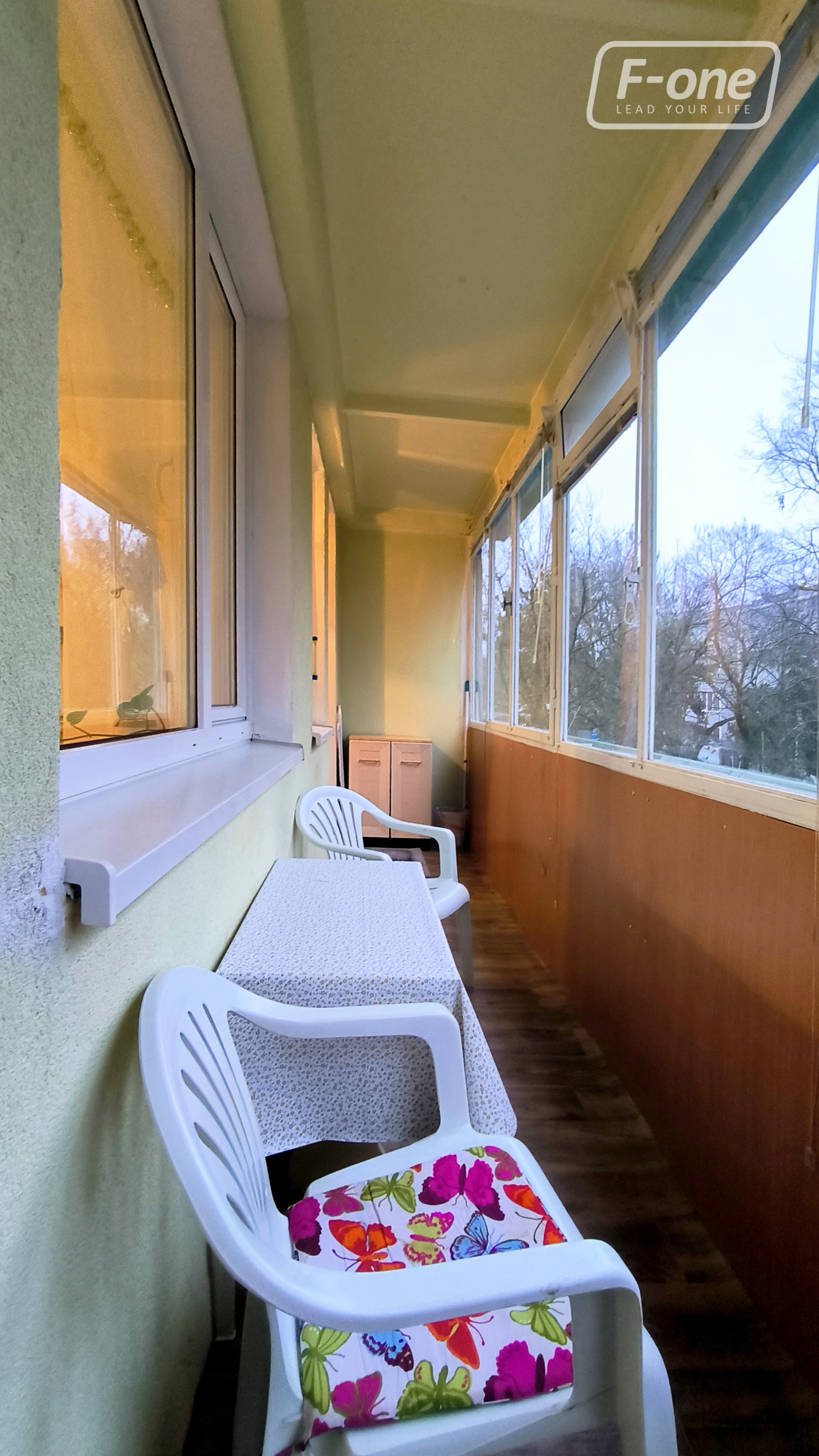 Byt je riešený ako 1-izbový, doplnený o samostatnú menšiu miestnosť s dverami, vhodnú ako mini spálňa alebo pracovňa. Súčasťou je priestranná 6 m dlhá zasklená loggia so žalúziami, prístupná z dvoch vstupov. Byt má samostatné WC, kúpeľňu so sprchovým kútom a dostatok úložného priestoru. Prenajíma sa kompletne zariadený vrátane spotrebičov. Po dohode s majiteľom je možné doplniť zariadenie bytu.