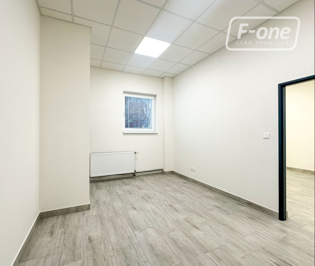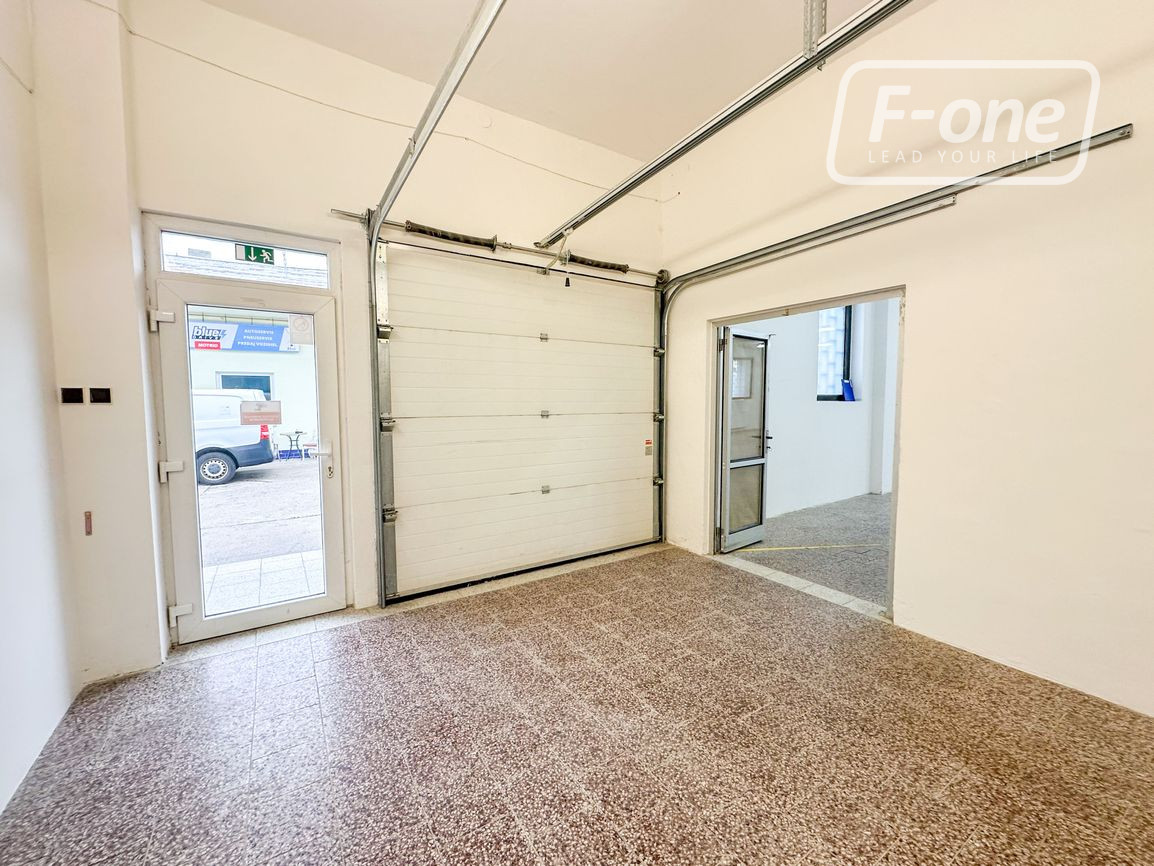 Tvorí ju vstupná chodba, kde sa nachádza elektrická garážová brána s rozmermi 2,2 x 2,2 m, dve kancelárie, kúpeľňa a toaleta. Prvá kancelária má rozlohu 16 m2 a je prepojená s druhou kanceláriou s plochou 14 m2, v ktorej sa nachádza aj menšia kuchyňa. Dominantou je skladová časť s výmerou približne 120 m2, v ktorej sa nachádza prívod vody, čo umožňuje využitie aj na skladovanie potravín alebo iných komodít, kde je voda potrebná aj mimo sociálnych zariadení. Celý objekt je vykurovaný, čo zabezpečuje komfortné podmienky počas celého roka.